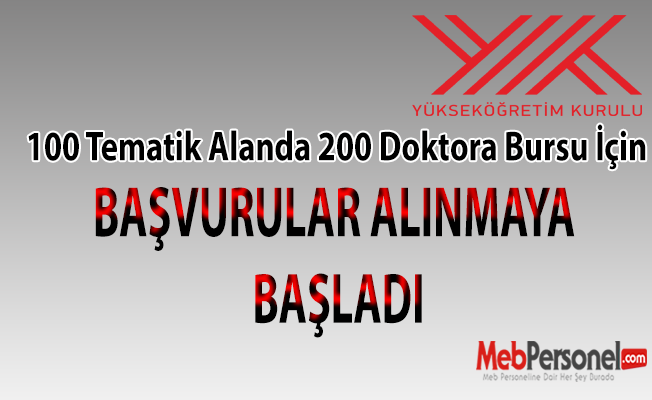 Yükseköğretim Kurulu tarafından belirlenen öncelikli alanlarda ülkemizin doktoralı insan kaynağına olan ihtiyacını karşılamak üzere, yurtiçindeki devlet üniversitelerinde 100 tematik alanda YÖK Doktora Bursu verilecektir.