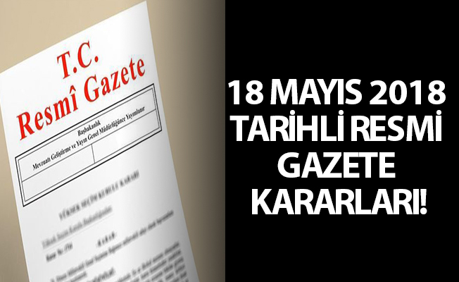 18 MAYIS 2018 TARİHLİ RESMİ GAZETE KARARLARI!