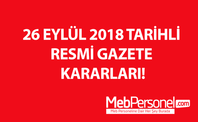 26 EYLÜL 2018 TARİHLİ RESMİ GAZETE KARARLARI!