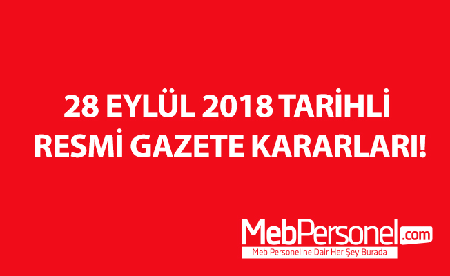 28 EYLÜL 2018 TARİHLİ RESMİ GAZETE KARARLARI!