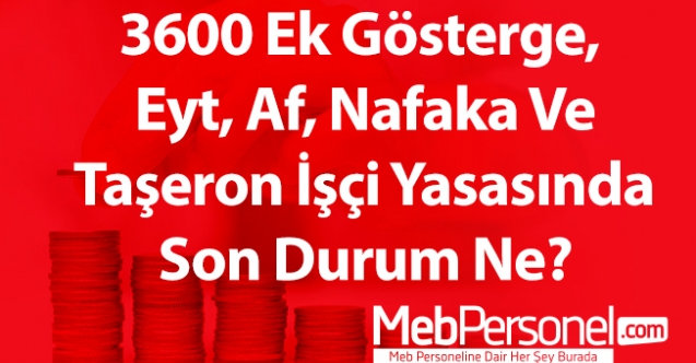 Bu hafta Meclis gündemi vatandaşlar tarafından oldukça merak ediliyor. Özellikle EYT, af, 3600 ek gösterge, nafaka, taşeron işçi yasası için yeni gelişmeler gelmeye devam ediyor. Öncelikle EYT bekleyenlere kötü haber geldiğini söylemeliyiz. Bakan Selçuk: EYT bekleyenlerin yaş ortalamasının 48 olduğunu belirten Bakan Selçuk, bu yaşta emekli olunamayacağını söylemişti. Af yasası için ise Başkan Erdoğan’dan açıklama gelmişti. Başkan Erdoğan, alternatif infaz yöntemlerinin uygulanmasında bazı sıkıntılar yaşanabileceğini belirterek bu konuda daha kapsamlı bir çalışma yapılması talimatı vermişti. Peki EYT, sözleşmeli personele kadro, taşeron işçi, af, nafaka, ek gösterge çıktı mı, son durum Meclis’e geldi mi?
