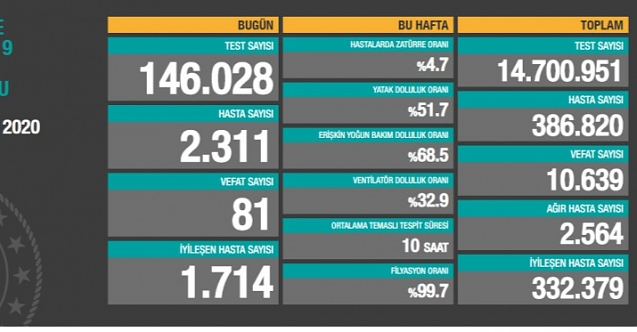 Sağlık Bakanı Fahrettin Koca, 5 Kasım koronavirüs tablosuna ilişkin yaptığı açıklamada, ”Bugün tespit edilen 2.311 yeni hastamız var. Ağır hasta sayımız dünden 100 fazla. Bu artışa engel olmak zorundayız. Hastalığa yakalanmayı göze alacak kadar mecbur olmadıkça temas ve hareketlilikten uzak durun. Hijyene önem verin. Maske kullanın. ” ifadelerini kullandı.