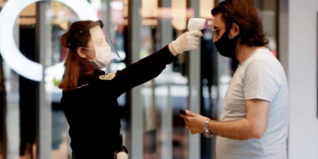 İstanbul’daki bir AVM’de, girişlerde yetkili çalışanların ateş ölçüm testine tabi tutulan müşteriler, maskesiz ve yakın mesafede içeriye alınmıyor. Ateşi 38 dereceden yüksek olan müşteriler içeri kabul edilmezken, sağlık kuruluşuna gitmeleri isteniyor.