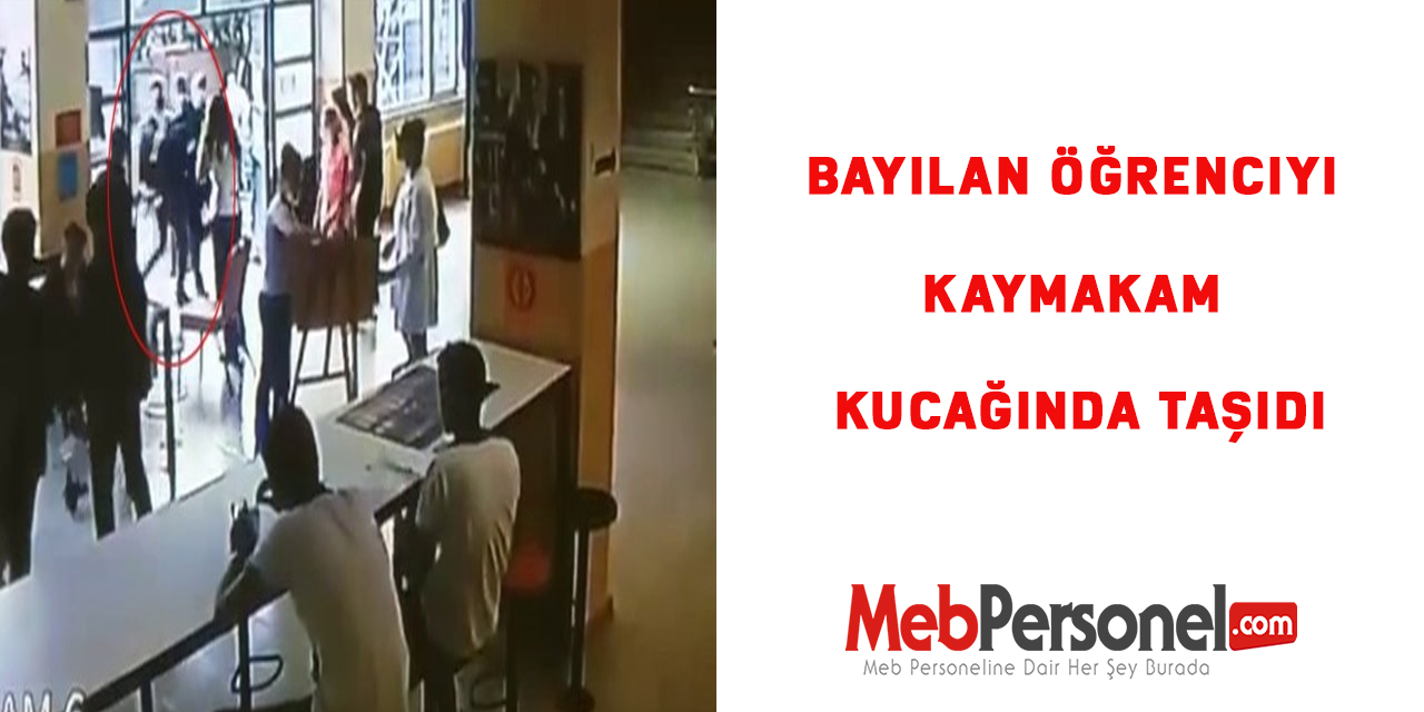Yaşanan panik anları ve kaymakamın öğrenciyi kucağında taşıma anı güvenlik kamerası tarafından saniye saniye kaydedildi.