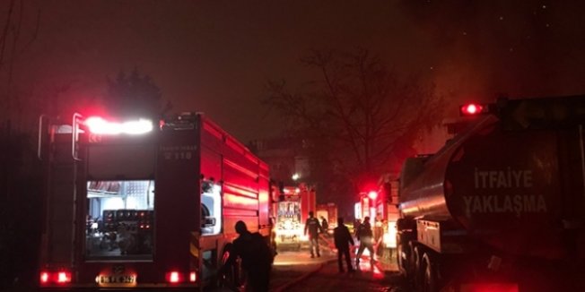 10 itfaiye aracının müdahale ettiği yangın kontrol altına alınmaya çalışılıyor.