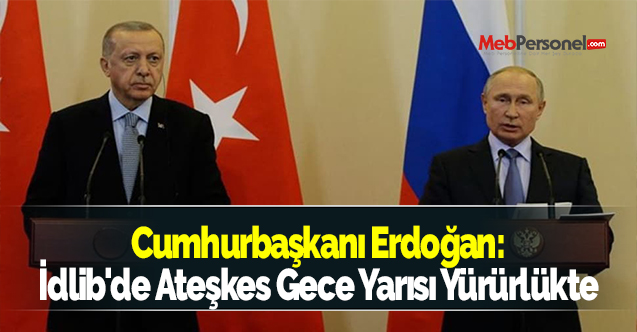Cumhurbaşkanı Erdoğan: İdlib’de Ateşkes Gece Yarısı Yürürlükte