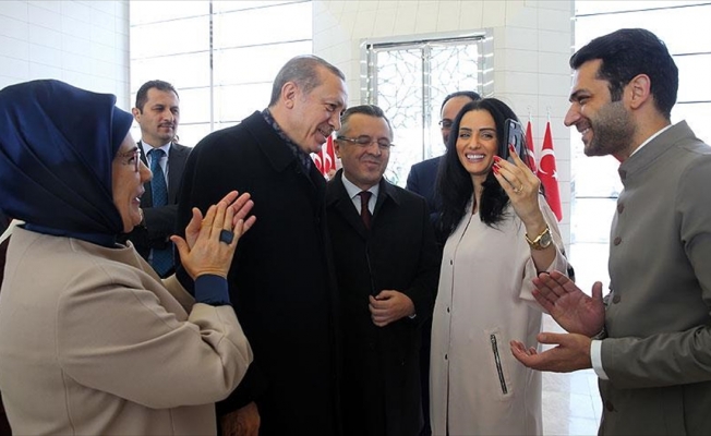 ANKARA (AA) – Cumhurbaşkanı Recep Tayyip Erdoğan ve eşi Emine Erdoğan, Esenboğa Havalimanı’na gelişinde oyuncu Murat Yıldırım ve nişanlısı Faslı oyuncu ve model İmane El Bani ile karşılaştı.