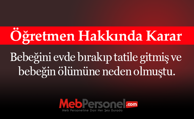 Kocaeli’nin Gölcük İlçesi’nde, 2014 yılı Ekim ayında, 2 aylık bebeğini evde yalnız bırakıp 9 günlük Kurban Bayramı tatilinde ailesinin yanına giden öğretmen, bebeğin ölümüne neden olmuştu. Adli süreçte öğretmen müebbet hapis cezasına çarptılmıştı.