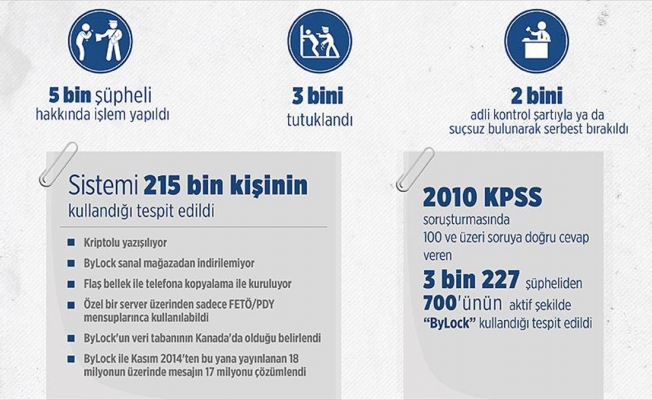Bu operasyonların yanı sıra 15 Temmuz’dan bu yana devam eden soruşturmalar kapsamında tutuklanan yaklaşık 38 bin zanlının büyük bölümünün de ByLock kullandığı öğrenildi.