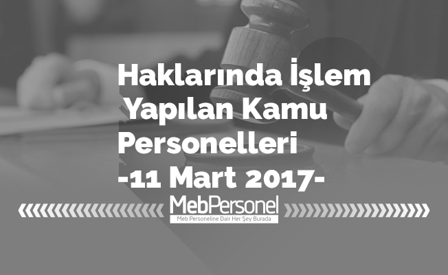 Haklarında İşlem Yapılan Kamu Personelleri -11 Mart 2017