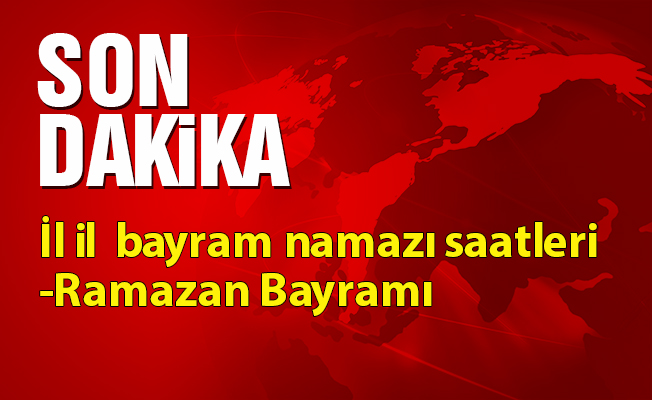 Ramazan Bayramı namazı 4 Mayıs Salı sabahı başkent Ankara’da saat 06.01, İstanbul’da 06.13, İzmir’de 06.27, Çanakkale’de 06.26 ve Iğdır’da 05.16’da kılınacak. Diyanet İşleri Başkanlığı verilerine göre, illerdeki bayram namazı saatleri şöyle: