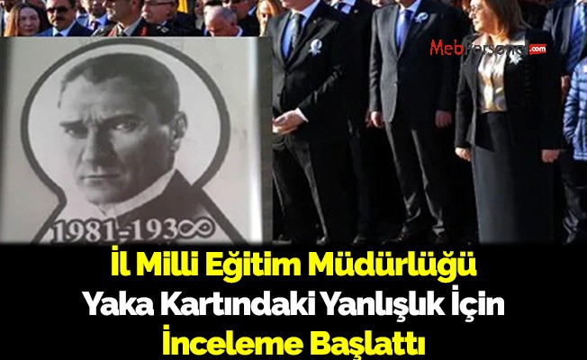 Gaziantep İl Milli Eğitim Müdürlüğü, Büyük Önder Atatürk’ün ebediyete intikalinin 81. yılı anısına düzenlenen törende dağıtılan yaka kartında Atatürk’ün doğum tarihinin yanlış yazılmasıyla ilgili inceleme başlatıldığını bildirdi.