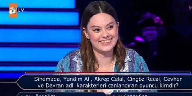 İdil Aybala Esmer adlı yarışmacıya gelen bir soru sunucu Kenan İmirzalıoğlu’nu da içeriyordu. Yarışmacı gelen “Sinemada Yandım Ali, Akrep Celal, Cingöz Recai, Cevher ve Devran adlı karakterleri canlandıran oyuncu kimdir?” sorusu sonrası risk almak istemedi ve joker hakkını kullandı.