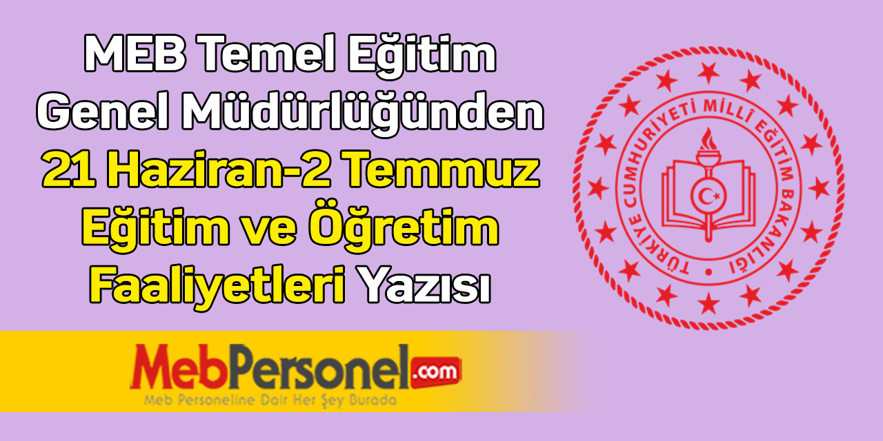 MEB Temel Eğitim Genel Müdürlüğü, 21 Haziran-2 Temmuz tarihleri arasındaki eğitim ve öğretim faaliyetlerinin nasıl olacağına ilişkin resmi yazı gönderdi.
