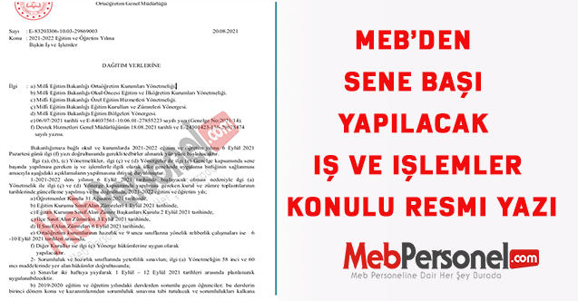 MEB, Ortaöğretim genel müdürlüğü 2021-2022 Eğitim ve Öğretim Yılına İlişkin İş ve İşlemler konulu resmi yazıyı İl Milli Eğitim Müdürlüklerine gönderdi.