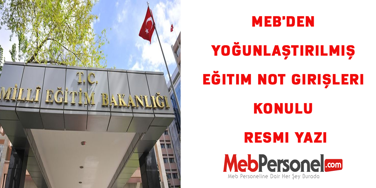 MEB’den Yoğunlaştırılmış Eğitim Not Girişleri Konulu Resmi Yazı