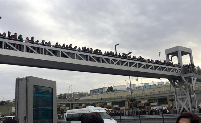 Vatandaşların Merter durağından metrobüse binebilmek için kullandığı üst geçitte yoğunluk oluşurken, E-5’te de trafiğin kontrollü olarak sağlanması trafikte yoğunluğa neden oluyor.
