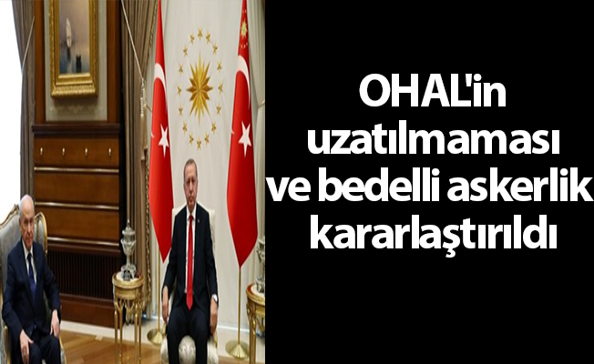 Cumhurbaşkanı Recep Tayyip Erdoğan ve Milliyetçi Hareket Partisi lideri Devlet Bahçeli’nin bugün gerçekleştirdiği görüşmenin detayları ortaya çıktı. Tarihi seçim zaferinin ardından gerçekleşen görüşmeden ana gündem maddeleri arasında yeni sistemde yapılacak çalışmalar, OHAL ve bedelli askerlik olduğu öğrenildi. Görüşmede OHAL’in uzatılmaması yönünde mutabakata varıldığı kaydedildi.