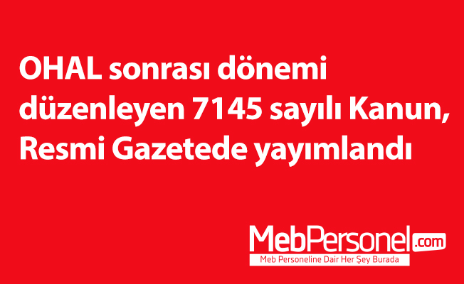 OHAL sonrası dönemi düzenleyen 7145 sayılı Kanun, Resmi Gazetede yayımlandı