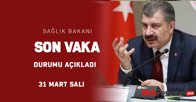 Sağlık Bakanı Koca, 31 Mart 2020 Koronavirüs Verilerini Açıkladı. Bakan Koca twitter hesabı üzerinden koronavirüste 31 Mart tarihli güncel verileri paylaştı.