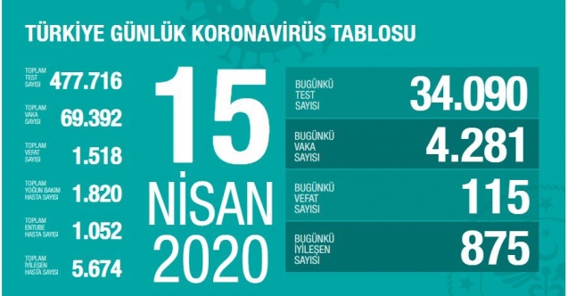 Sağlık Bakanlığı 15 Nisan 2020 tarihli verileri açıkladı