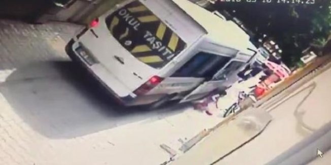 Öğrenci servisinden inmeye çalışan ilkokul öğrencisi, minibüs durmadan inmek istediği esnada ayağı takılınca aracın altına girdi. Durumu fark eden sürücünün aracı durdurmasıyla olası facianın önüne geçildi.