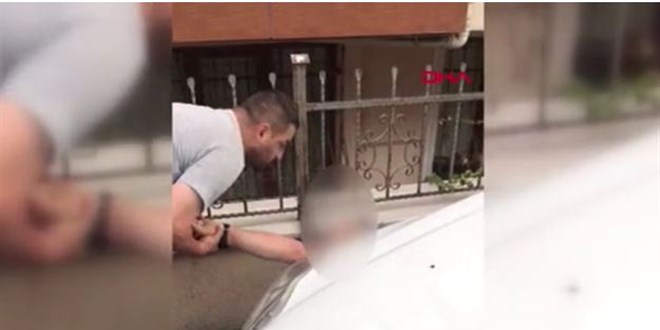 Maltepe’de banyodaki eşinin havalandırma penceresinden izlendiğini fark eden Ramazan K., kaçan şüpheliyi sokakta kovalayarak yakaladı. Ramazan K.’nın yere yatırıp tokat attı. Yaşananlar kameraya yansırken, şüpheli tutuklandı