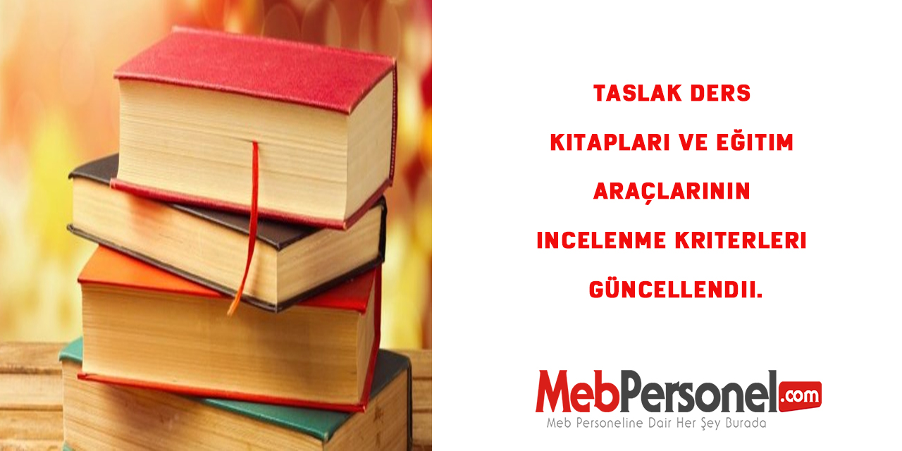 MEB Talim ve Terbiye Kurulu Başkanlığının internet sitesinden, 14 Ekim’de Resmi Gazete’de yayımlanan “Ders Kitapları ve Eğitim Araçları Yönetmeliği” doğrultusunda güncellenen kriterler duyuruldu.
