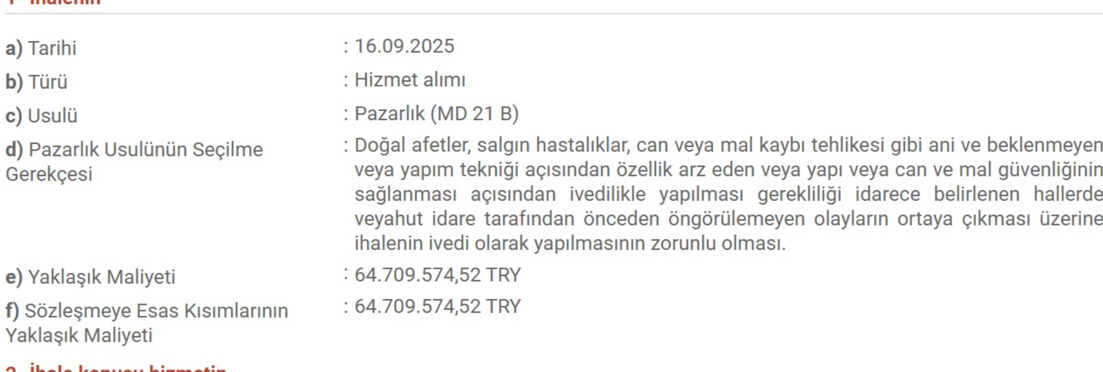 Şimdi ise söz konusu ihaleye ilişkin resmî belgeler ortaya çıktı.