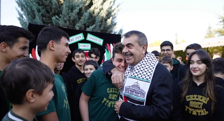 Bakan Tekin, Ankara Etimesgut’ta bulunan Cezeri Yeşil Teknoloji Mesleki ve Teknik Anadolu Lisesi’ni ziyaret ederek ‘Bir Okul Bin Umut Gazze Kermes Alanı’nda incelemelerde bulundu. Ziyareti sırasında bir konuşma yapan Tekin, şu ifadeleri kullandı: “Bu okulda, Filistin konusunda farkındalık oluşturmak amacıyla yaptığımız etkinliklerden bir tanesi yapılıyor. Biz 7 Ekim 2023 itibariyle çocuklarımıza Türkiye Yüzyılı Maarif Modeliyle beraber bağımsızlık, adalet, insan hakları, demokrasi gibi değerlerin uluslar için, insanlık için ne kadar önemli olduğunu anımsatmaya, hatırlatmaya, bu konuda bilgilendirmeye çaba sarf ediyoruz”