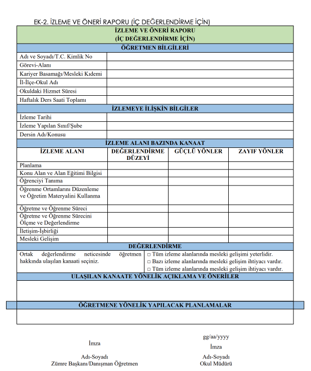 Öğretmenlerin sınıf içi etkinlikleri ve öğretim faaliyetlerine dair tüm izleme ve değerlendirme formları, raporları, okul temelli mesleki gelişim planları ve sürece yönelik tüm belgeler MEBBİS veri tabanında güvenle saklanacaktır.