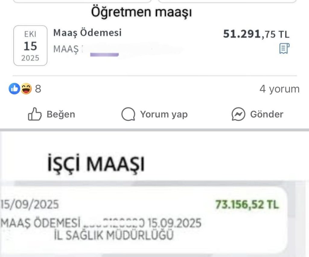 Sosyal medyada yapılan paylaşımda ise 51.291 TL aldığını ifade eden ve internet bankacılığı üzerinden kendisine yatan tutarı paylaşan bir öğretmene karşılık olarak bir kamu işçisi aynı ay almış olduğu 73.156 TL’lik maaşını paylaştı. Mevcutta 65 bin TL bandında olan uzman öğretmen maaşına 8 bin TL tutarındaki ek ders ücreti eklendiğinde ancak işçi maaşına erişilmiş olunuyor.