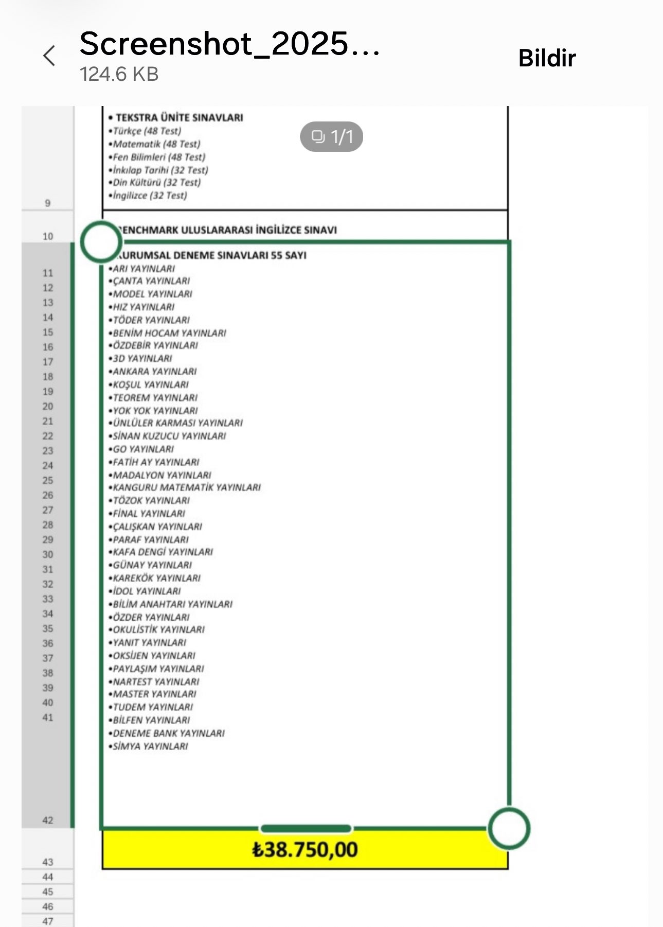 Veli, yaşadığı mağduriyeti sosyal medyada ve şikayet kanallarında dile getirirken, kendisine gönderilen resmi okul mesajını da paylaştı. Okul yönetiminin mesajında, “Öğrencimiz yardımcı kitap paketimizi almadığı için ve deneme sınavı sayıları da ona göre geldiğinden yarınki deneme sınavına giremeyeceklerdir.” ifadelerinin yer alması, velilerin tepkisini daha da artırdı. Veli tarafından paylaşılan kaynak kitap listesinin maliyeti 38 bin 750 TL.