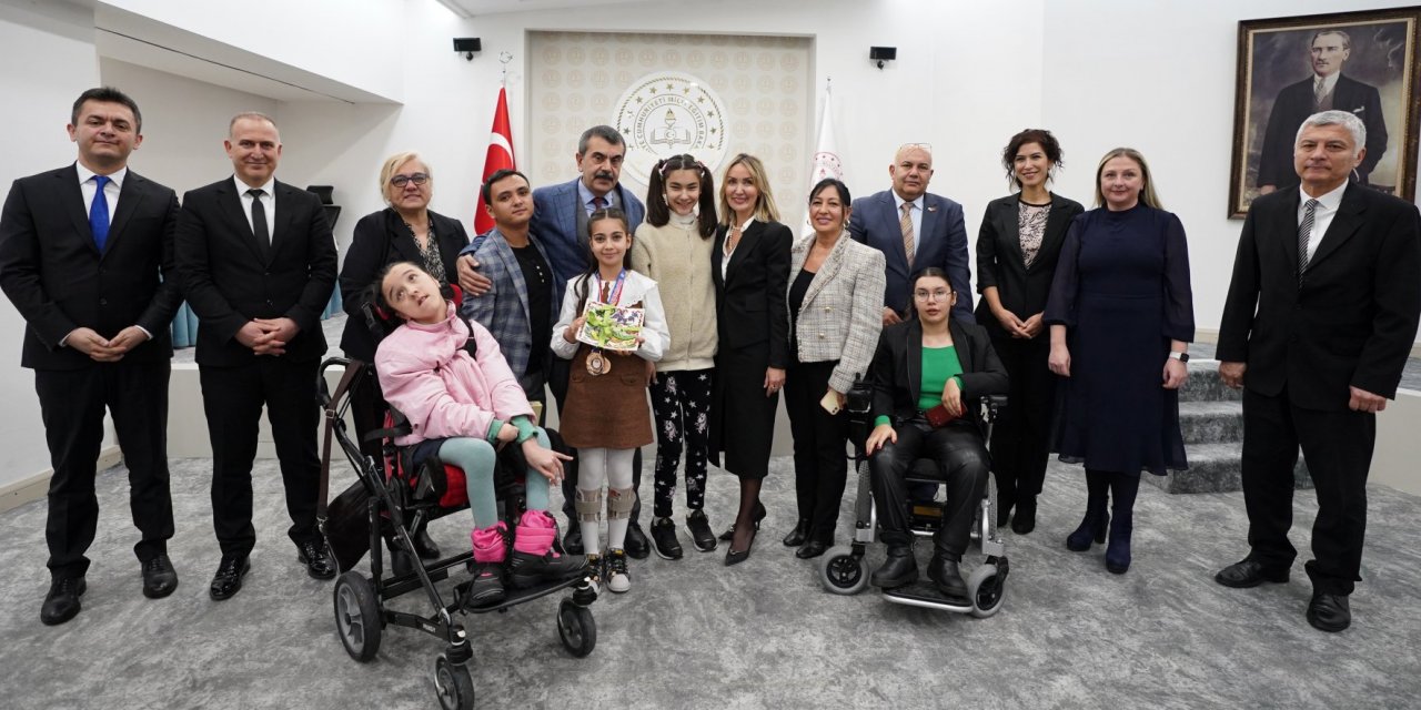 MEB Başöğretmen Salonu’nda gerçekleşen kabule SERÇEV Engelsiz Mesleki ve Teknik Anadolu Lisesi, MEV Gökkuşağı Özel Eğitim İlkokulu ve Ortaokulu ile Halise Arslan Özel Eğitim İlkokulundan gelen öğrenciler, öğretmenleri ile velileri katıldı.