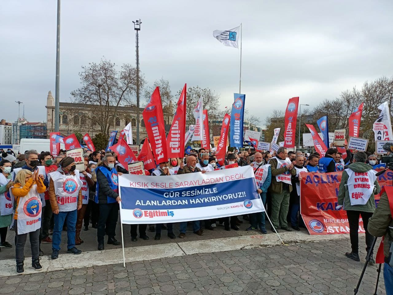 Öğretmene hoyrat davranılmaz, öğretmene saygı duyulur şiarıyla bugün biz de mesleğimizin onuru, mesleğimizin itibarı için ve anlamak istemeyenlere, alanlardan ders verme kararlılığıyla mücadeleyi büyütmeye devam edeceğiz. Bugün öğretmenlik, Cumhuriyet tarihi boyunca eşi görülmemiş bir saldırıyla karşı karşıya. 20 yıl içinde refahımızı aldılar, mesleki haklarımızı kırptılar. Yaşanabilir bir emeklilik hayalimizi bile çaldılar. Şimdi çıkardıkları Öğretmenlik Meslek Kanunu ile itibarımızı da almak istiyorlar. Bugün ‘Orada dur’ demek için, kanun çıkarken Meclis’te iktidar vekillerinin yüzüne baka baka söylediğimiz, ‘Öğretmene parmak sallanmaz’ sözünü alanlarda çınlatmak için, hakların saraylarda kısık sesle değil, alanlarda gür sesle savunulduğunu göstermek için buradayız.
