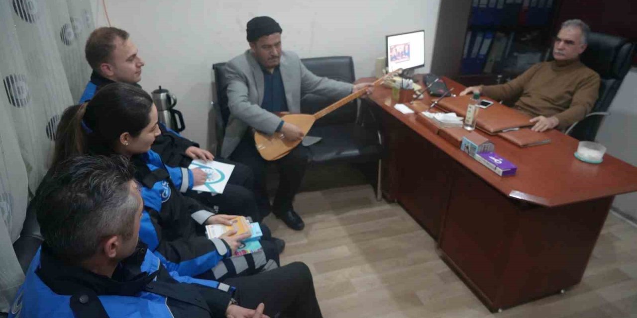 Kırıkkale İl Emniyet Müdürlüğü Toplum Destekli Polislik Şubesi’nde görevli polis memurları, 7-14 Ocak Beyaz Baston Görme Engelliler Haftası dolayısıyla Görme Engelliler Derneği’ni ziyaret ederek, saygı ve sevgi dileklerini iletti. Dernek başkanı Adnan Çelik’te ziyaretlerinden dolayı polis memurlarına teşekkür etti. Doğuştan görme engelli 43 yaşındaki İsmail Üstün ise sohbetin ardından polis memurları için bir süre bağlama ile “Allı turnam” türküsünü çaldı.