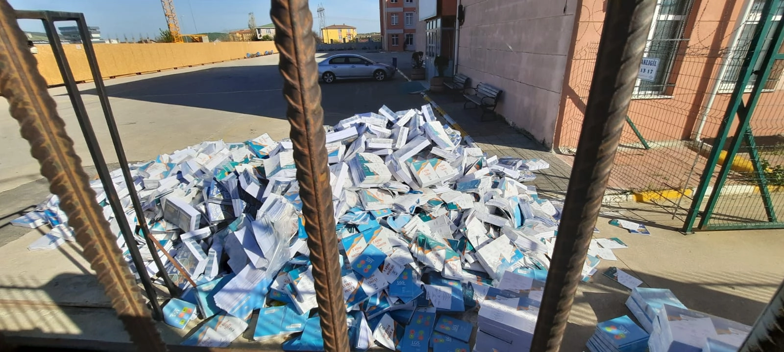 Binlerce daha ambalajından sökülmeden öğrenciye verilmeden geri dönüşüme giderken vatandaşlar tarafından yakalandı.