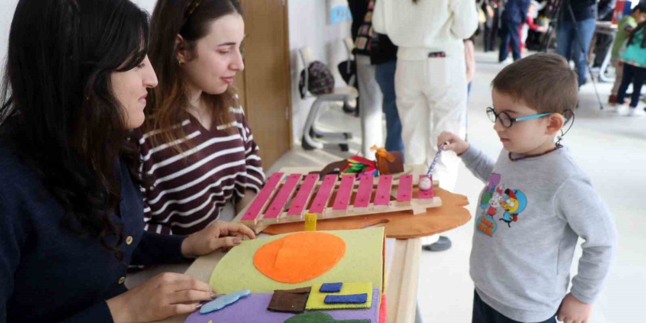 Masal Atölyesi Sınıfından çıkan anaokulu öğrencileri daha sonra EBYÜ Çocuk ve Oyun Kulübü öğrencilerinin koridorda kurduğu oyun stantlarında bolca neşeli vakit geçiriyorlar.