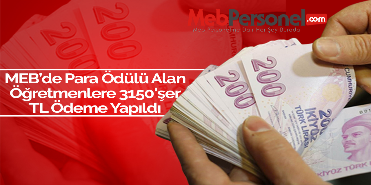 MEB’de Para Ödülü Alan Öğretmenlere 3150’şer TL Ödeme Yapıldı