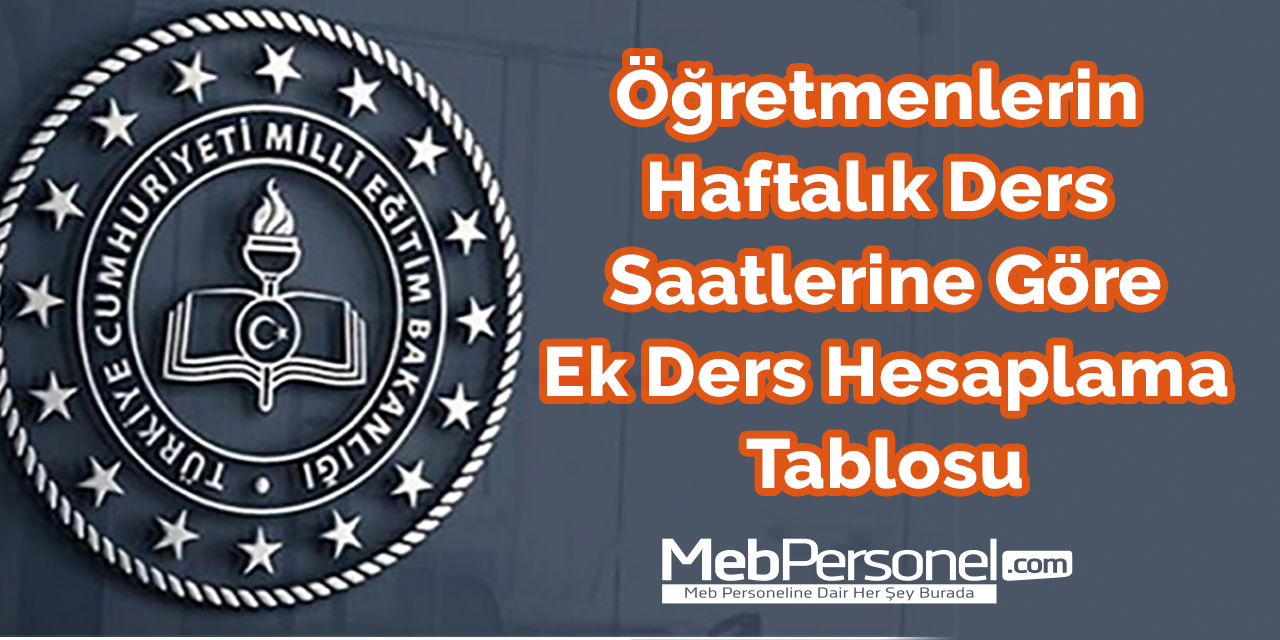 MEB-Milli Eğitim Bakanlığı’na bağlı resmi kurumlarda görev yapan öğretmenlerin haftalık ders saatleri yüküne göre aldıkları ek ders ücretleri ve ek ders hesaplama tablosu mebpersonel.net farkıyla sizlerle.