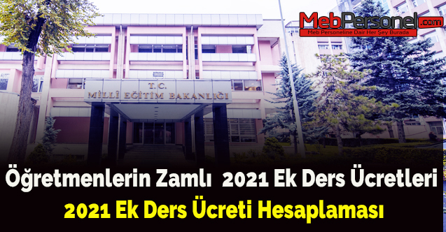 MEB 2021 ek ders ücretleri de zamlandı. Ek ders ücretlerine yapılan zammı ve 2021 ek ders ücretleri hesaplamalarını mebpersonel.net da inceleyebilirsiniz.