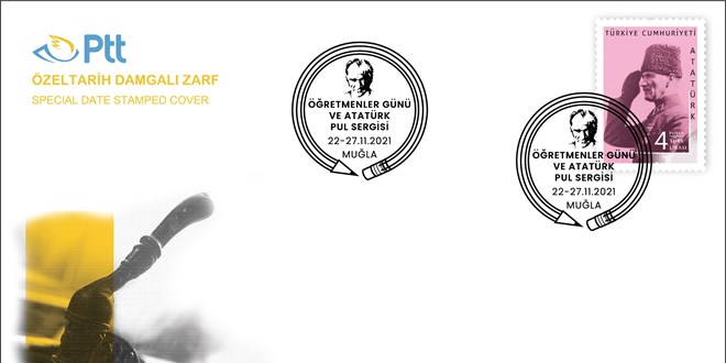 “Öğretmenler Günü ve Atatürk Pul Sergisi 22-27.11.2021 MUĞLA” ibareli özel tarih damgalı zarflar 5,50 lira bedelle PTT’ye ait www.filateli.gov.tr web adresinde, filateli cep uygulamasında ve etkinlik alanında bulunan filateli standında satışa sunulacak.