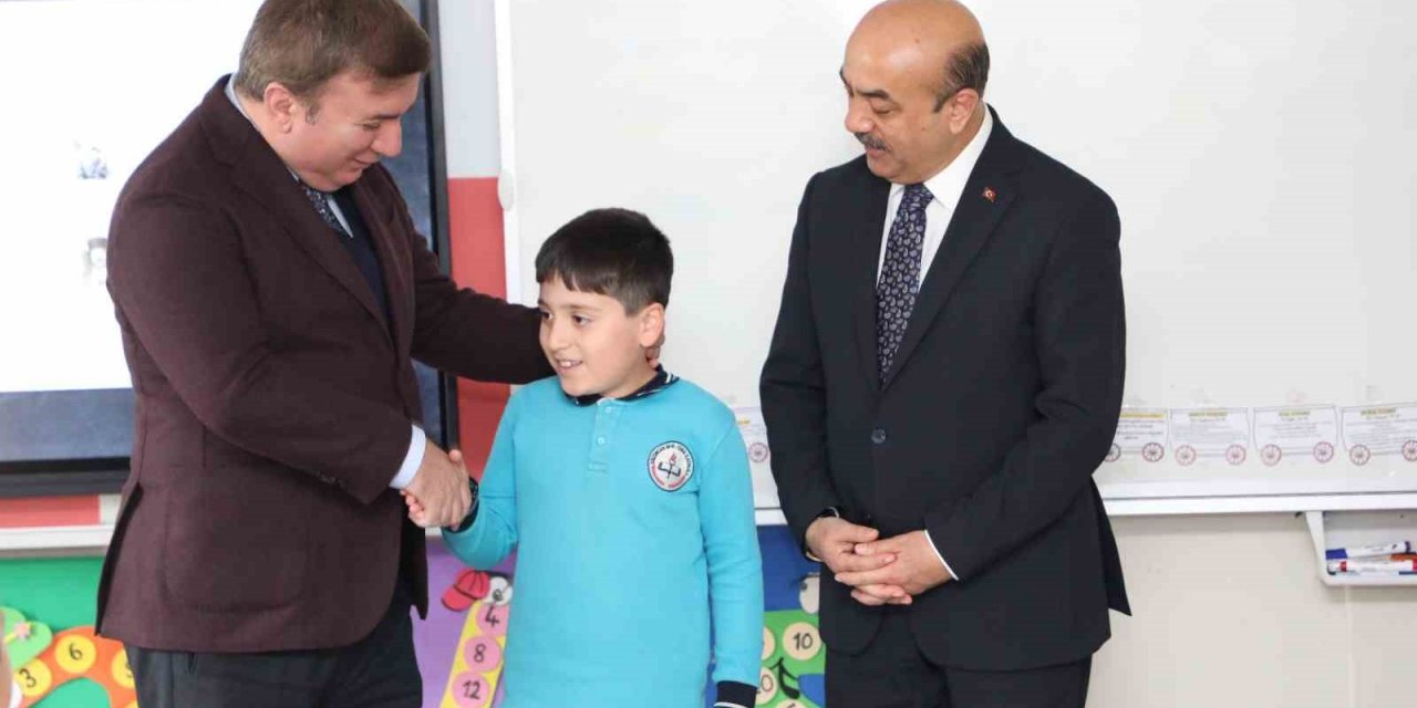 Sınıf başkanı seçilen Mehmet Efe Mutlu’nun davetine icabet eden Vali Aydoğdu, öğrencilerle sohbet ederek başarılar diledi.