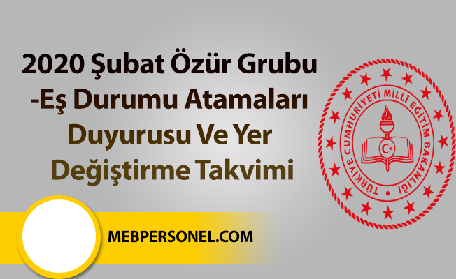2020 Şubat Özür Grubu -Eş Durumu Atamaları Duyurusu Ve Yer Değiştirme Takvimi