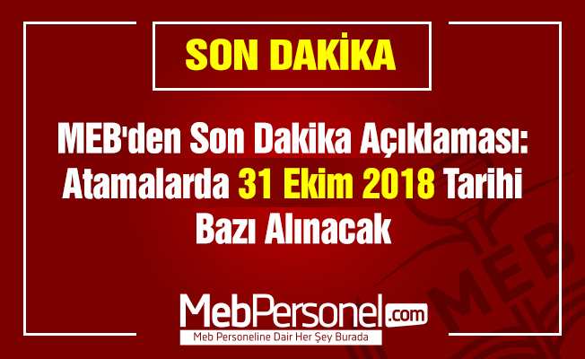 MEB’den Son Dakika Açıklaması: ”Atamalarda 31 Ekim 2018 Tarihi Bazı Alınacak”