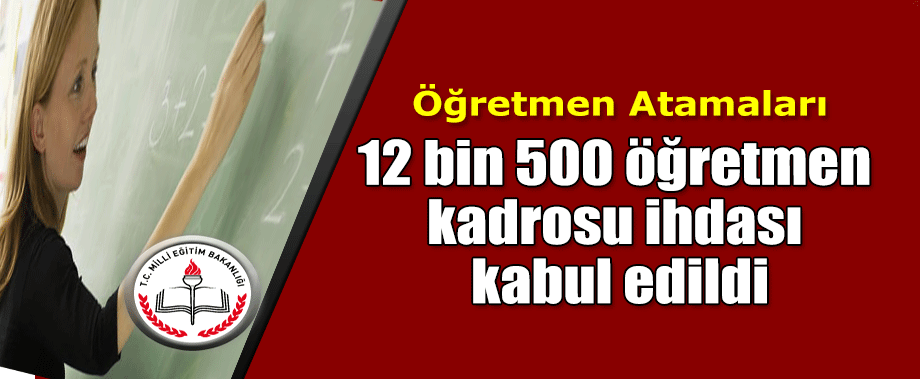 Milli Eğitim Bakanlığı’na 12 bin 500 öğretmen kadrosu ihdas edilecek.