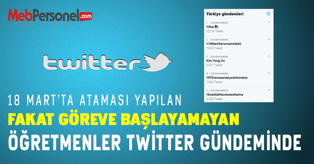 Göreve başlayamayan bu öğretmenler, #18MartKararnameVakti hastagi ile Twitter gündeminde üst sıralarda yerlerini aldılar.