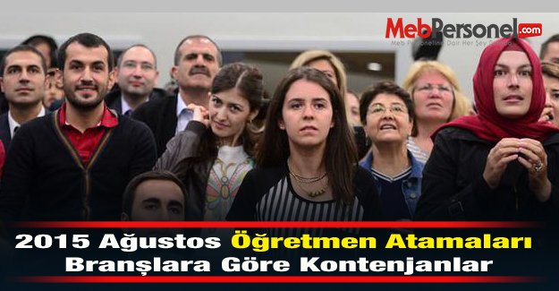2015 Ağustos Öğretmen Atamaları Branşlara Göre Kontenjanlar