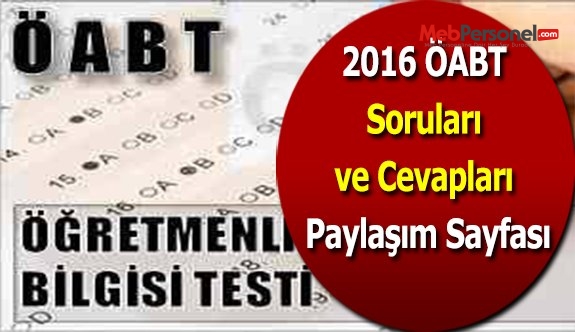 2016 ÖABT (Öğretmenlik Alan Bilgisi Testi), ÖSYM tarafından 20 Ağustos Cumartesi günü gerçekleştirilecek. Öğretmenlik alan sınavına giren öğretmen adayları soruları ve cevapları Facebook paylaşım grubumuzda görebilecekler.