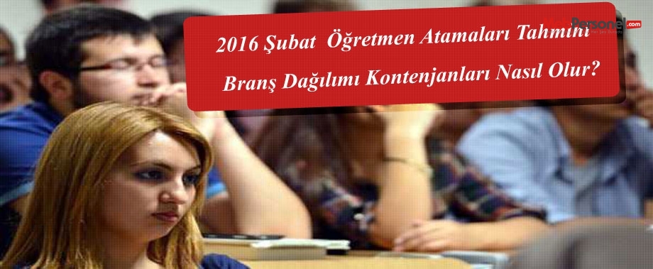 Şubat 2016 öğretmen ataması branş bazında kontenjan dağılımı tahmini nasıl olur, müjdeli haberden sonra beklenen atama kontenjanları ve detayları haberimizde. Başbakan Ahmet Davutoğlu katıldığı bir televizyon programında önemli bir müjdeli haberi kamuoyu ile paylaştı ve Şubat ayında öğretmen atamasının yapılacağını açıkladı. Peki bu atamalar branş bazında kontenjan dağılımı nasıl olacak merak ediliyor, toplamda 30 Bin Öğretmen ataması yapılacak.Henüz branş dağılımı açıklanmasa da eğitim editörlerimiz araştırmaları sonucu tahmini rakamları ortaya koydu. Öğretmen atamalarında en çok atanan öğretmen branşlarının genel anlamda çok değişikliğe uğramayacağı ve Şubat ayında 30 bin öğretmen atamasının yapılacağını varsayarsak atanacak öğretmenlerin branş bazında dağılımı tahminen şu şekilde olacaktır.